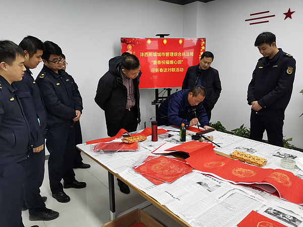 1月17日至19日,沣西新城城市城市管理综合执法局开展“墨香祝福暖心田”迎新春送对联活动,大力弘扬中国传统文化,营造祥和、欢乐、喜庆的新年氛围。