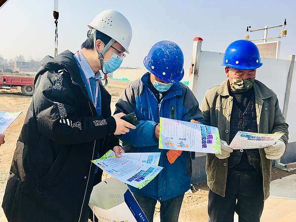 公司党支部科学谋划,精心组织,确保党支部党建带群团系列活动开好头、起好步。为减少人员聚集,提升志愿服务效果,全体志愿者划分为三组,分别前往沣河污水处理厂、沣河沣景路泵站及沣西新城丝路科创谷理想公社配套项目现场开展志愿服务。活动现场,志愿者首先向施工人员宣传科学防疫知识及新城疫情防控成效,接着,仔细地指导他们注册“一码通”并讲解需要注意的事项等。全体志愿者分工明确、配合默契,以耐心讲解和热情服务,在疫情防控行动中践行着“奉献、友爱、互助、进步”的志愿服务精神。