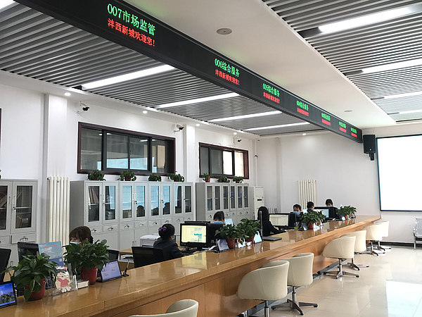 高桥便民服务站分为办事服务区与后台审批区。服务区设置综合服务、市场监管、户籍业务三大类共8个业务窗口,每个窗口专员专岗,统一配备电脑、打印机以及文件柜,并摆放鲜明标识,设置办事指南牌,方便群众办事。同时增设叫号及评价设备,科学分流办事群众,并在前台安排专业引导员,真正实现“自助+他助”的全方位服务模式。