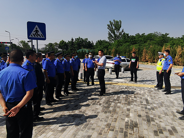 5月13日上午,沣西新城综合行政执法局联合交巡警在秦皇南路与科技路十字开展车辆违停专项执法演练活动。