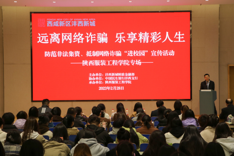 为进一步提高辖区内高校学生风险防范意识,增强风险防范与自我保护能力,2月28日,沣西新城财政金融部联合中国民生银行沣西支行赴陕西服装工程学院开展“远离网络诈骗 乐享精彩人生”防范非法集资、抵制网络诈骗宣传活动。
