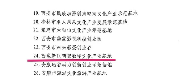 近日,《陕西省文化产业“十百千”工程重点文化产业园(基地)和企业名单》公布,沣西新城西部动漫产业基地、西部数字文化产业基地成功入选,获批全省文化产业示范基地。