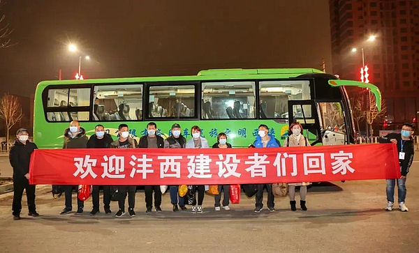 2月28日晚11点,10名务工人员乘坐沣西新城“返岗直通车”,在新城工作人员接护下由河南顺利抵达沣西。