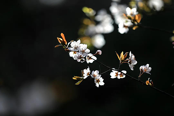 玉兰花洁白淡雅,红叶李枝头争俏,就连天空也变得活泼起来,还有沁人的芳香,让人沉醉其中。