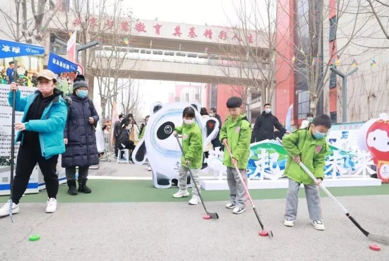 学校还在体育馆、操场上,为同学们准备了冰壶、冰球、单板、轮滑等冬奥相关比赛项目,让师生体验冬奥比赛,感受冰雪运动带来的乐趣。