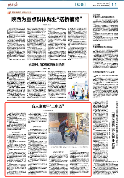 近期,电影《我心光明》剧组在西安、咸阳拍摄。这部电影改编自陕西作家许海涛的作品《光明行——盲人张喜平的一天》,讲述“陕西好人”张喜平的故事。更特别的是,影片的主人公由张喜平本人扮演。