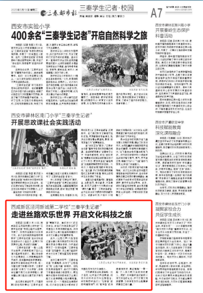 本报讯(王顺)5月10日,西咸新区泾河新城第二学校的“三秦学生记者”走进丝路欢乐世界,开展了一场别开生面的文化科技之旅。此次活动由陕西省思政课教学“三秦学生记者”社会实践活动组委会办公室主办,主题为“科技携手丝路,共创时代新篇”。