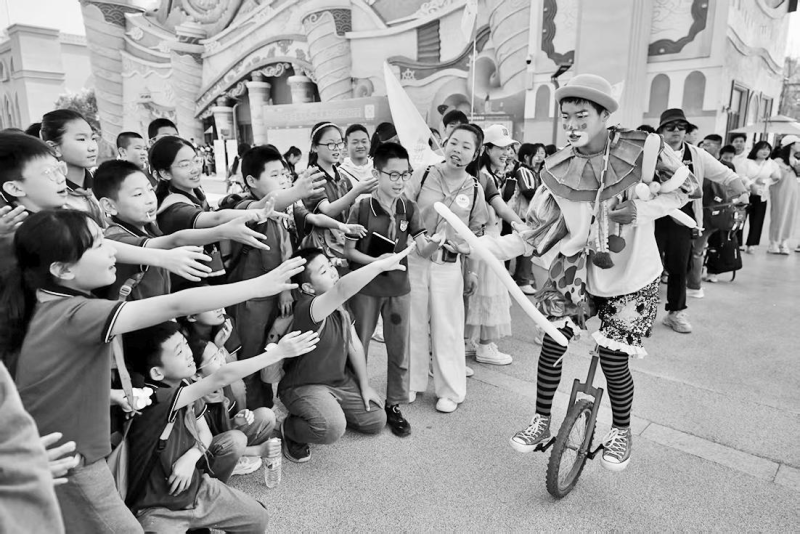 “三秦学生记者”一踏入丝路欢乐世界,仿佛穿越到了古代丝绸之路的繁华时代。精心设计的七大主题街区,从波斯舞蹈的热烈奔放,到希腊神话的浪漫神秘,再到罗马建筑的庄严宏伟,每一处都充满了惊喜与探索。“三秦学生记者”化身为“文化使者”,亲身体验着不同文化的独特魅力,感受着丝绸之路沿线国家的多样风情。