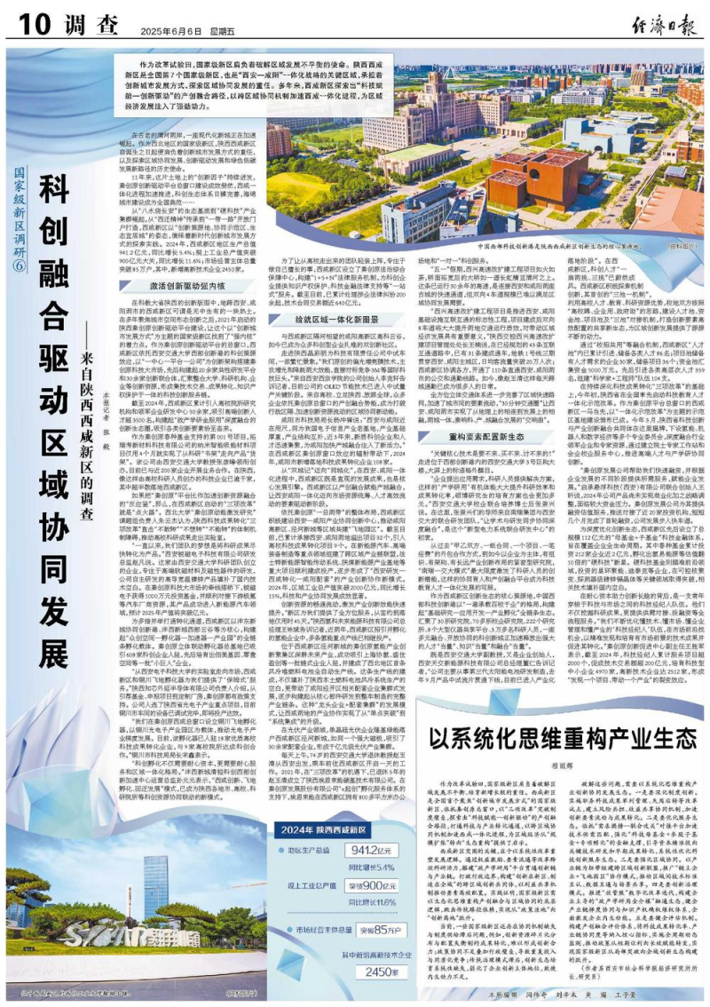 作为改革试验田,国家级新区肩负着破解区域发展不平衡的使命。陕西西咸新区是全国第7个国家级新区,也是“西安—咸阳”一体化战略的关键区域,承担着创新城市发展方式、探索区域协同发展的重任。多年来,西咸新区探索出“科技赋能—创新驱动”的产创融合路径,以跨区域协同机制加速西咸一体化进程,为区域经济发展注入了强劲动力。