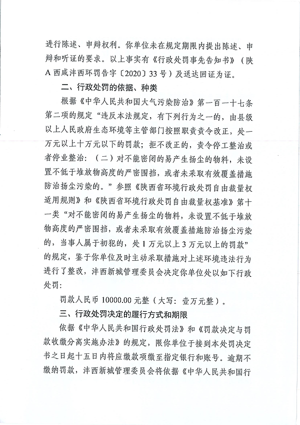陕西汉秦再生资源利用有限公司环境行政处罚决定书