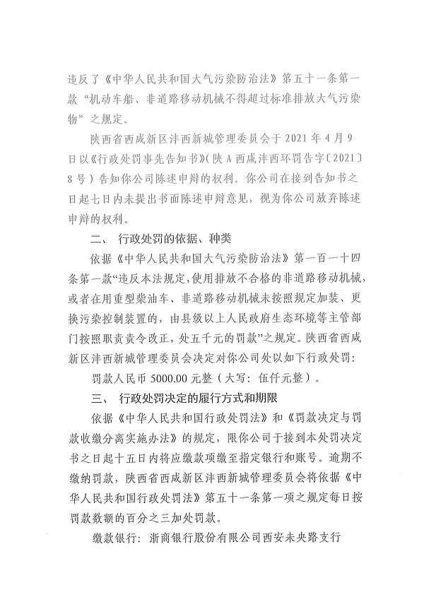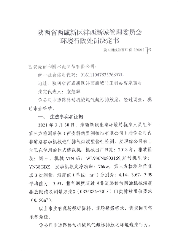 西安亮丽和圆水泥制品有限公司环境行政处罚决定书