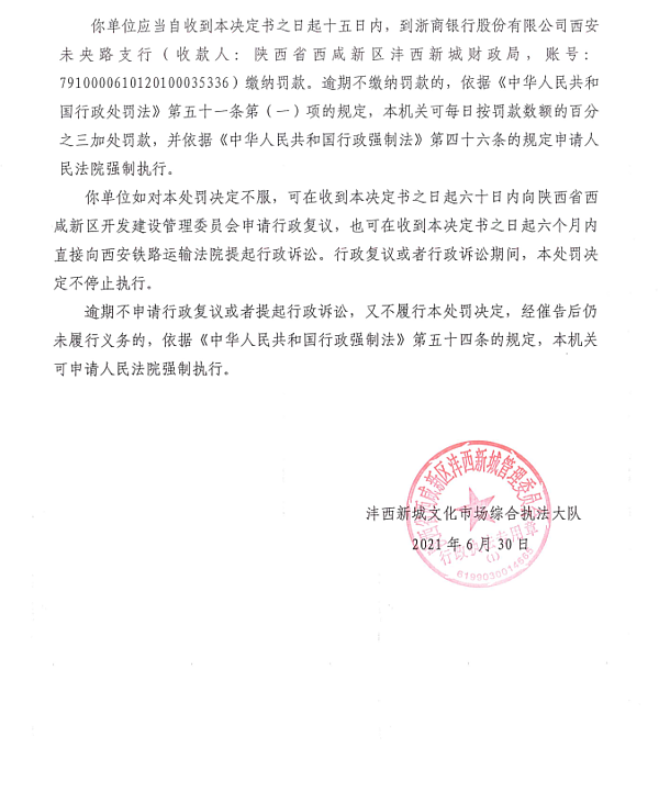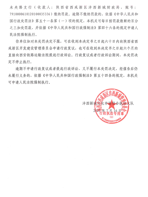 填表单位:西咸新区沣西新城文化市场综合执法大队 填表时间:2021年7月19日