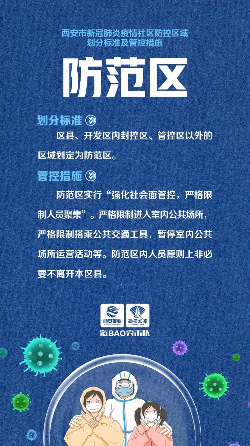 三是防范区。区县、开发区内封控区、管控区以外的区域划定为防范区。防范区实行“强化社会面管控,严格限制人员聚集”。严格限制进入室内公共场所,严格限制搭乘公共交通工具,暂停室内公共场所运营活动等。防范区内人员原则上非必要不离开本区县。