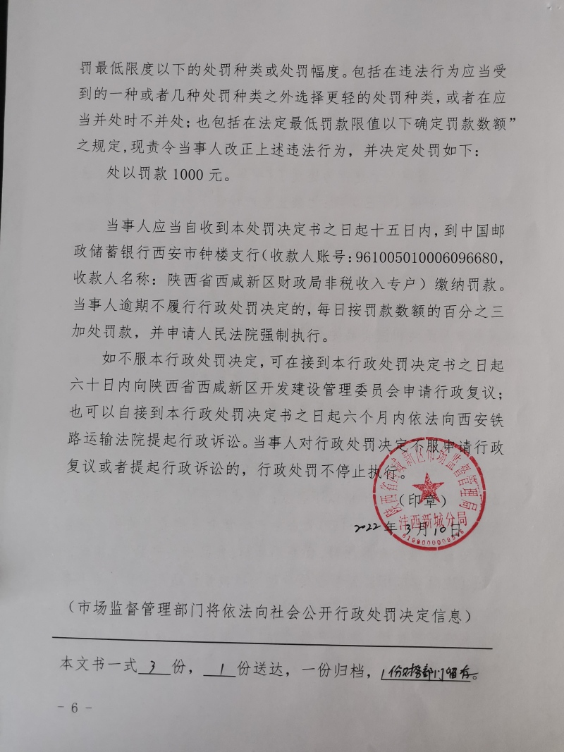 填报单位:西咸新区市场监督管理局沣西新城分局 填报日期: 2022年03月16日