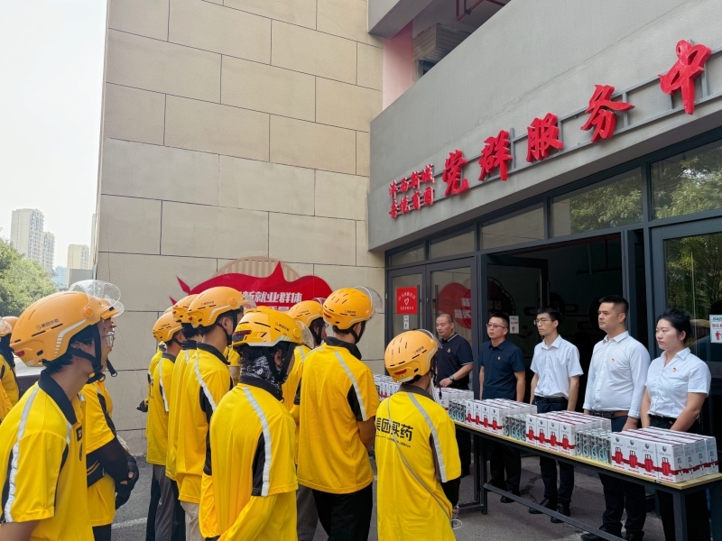 外卖小哥风雨无阻地穿梭在城市的大街小巷,用辛勤劳动为城市带来便捷与温暖。近日,气温居高不下,为给外卖小哥创造更加舒适的工作休息环境,沣西新城非公党委在辖区开展了系列送清凉活动。