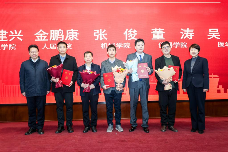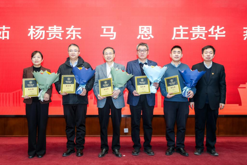 学校自2016年起设立企业冠名“伯乐奖”,专门奖励在人才引进、培养过程中做出突出贡献的先进个人。经过推荐评选,2024年度共10人获奖。刘茹、杨贵东、马恩、庄贵华、燕连福5位老师代表上台领奖,严俊杰为他们颁奖。