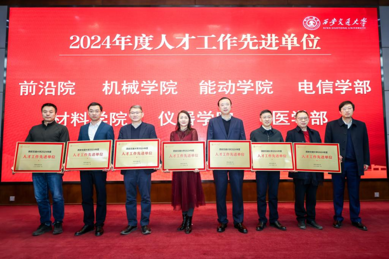 前沿院、机械学院、能动学院、电信学部、材料学院、仪器学院、医学部获2024年度人才工作先进单位称号,张立群为获奖单位代表颁奖。