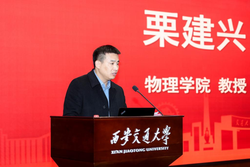 物理学院教授栗建兴代表2024年新入选领军学者发言。他回顾了自己加入西安交通大学以来在科研与教学领域经历的成长与蜕变,感谢了学校及团队前辈给他的助力,并表示,将继续坚持基础研究,深耕专业领域,不断探索前沿科学问题,为学校发展、国家建设贡献更多智慧和力量。