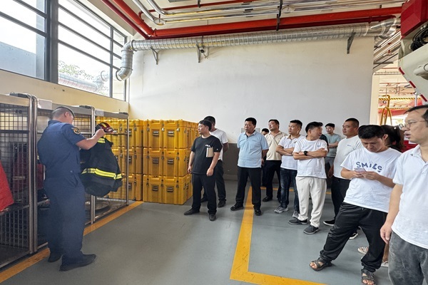 在讲解员的带领下,参观了消防站装备器材区,了解了破拆工具组、空气呼吸器、高压喷射枪等专业设备的功能、原理和使用情景,介绍了各式消防车辆的用途及随车器材。