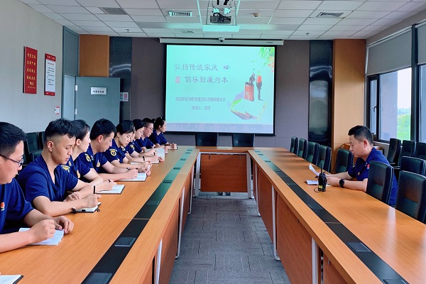 为深入学习贯彻习近平总书记关于注重家庭家教家风建设重要论述,助力党史学习教育活走实、走深、走细,8月21日,沣西新城大队组织开展“弘扬传统家风、倡导勤廉为本”主题学习教育,政治教导员吴栋授课,大队全体人员参加。