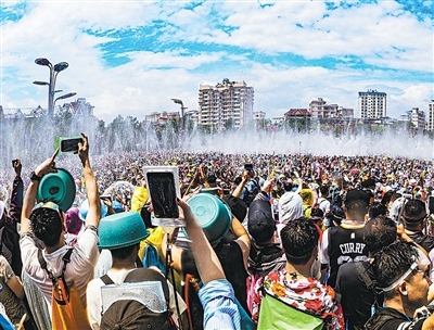 图为云南西双版纳泼水节场景。