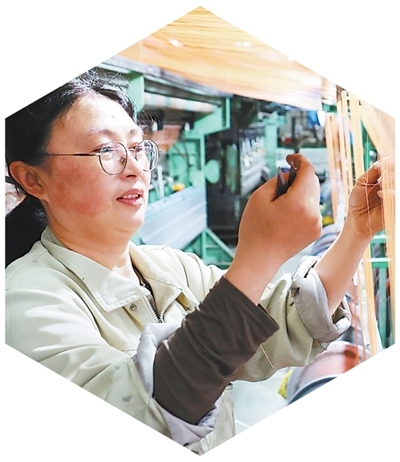 山东青岛市即墨区龙山街道一家纺织企业内,工人在生产出口服装面料。