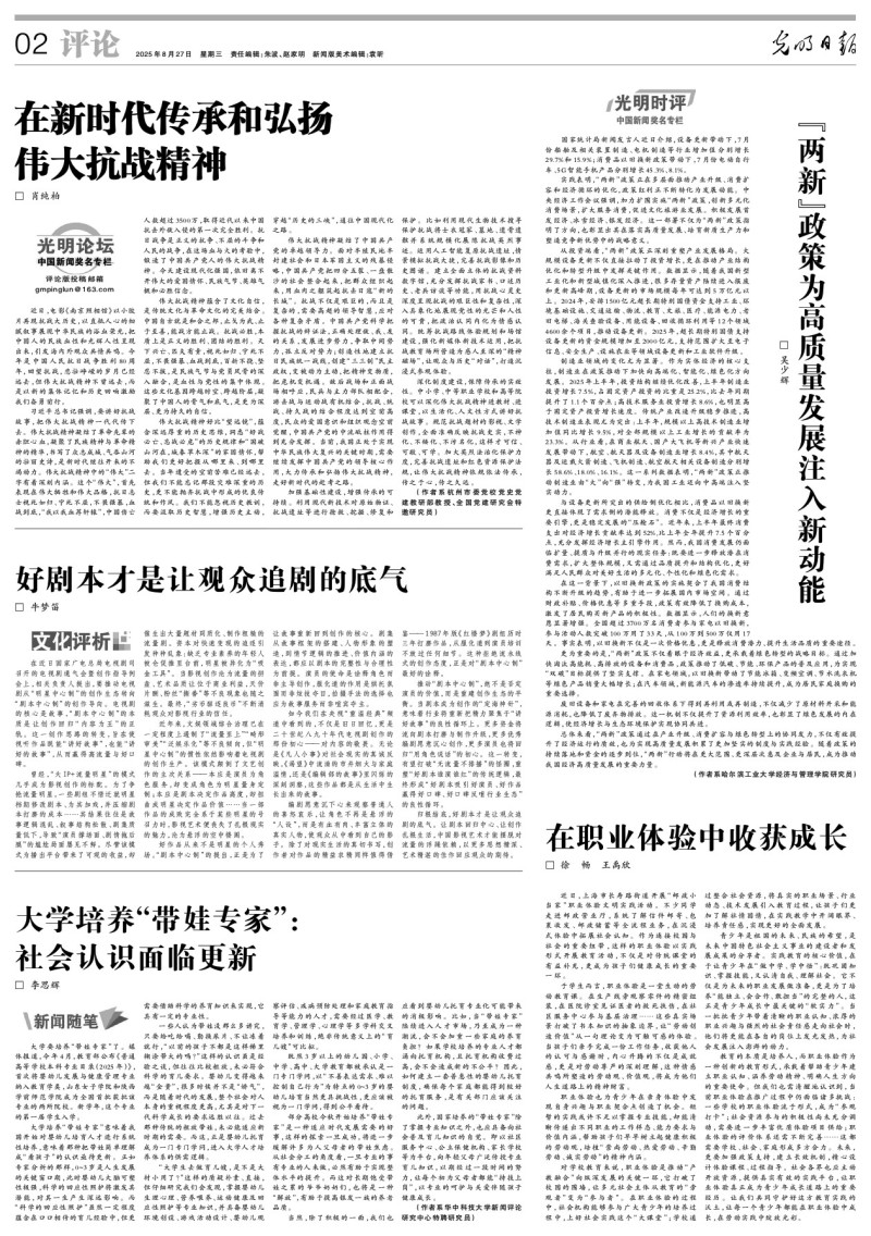 实践表明,“两新”政策正在多层面推动产业升级、消费扩容和经济循环的优化,政策红利正不断转化为发展动能。中央经济工作会议强调,加力扩围实施“两新”政策,创新多元化消费场景,扩大服务消费,促进文化旅游业发展。积极发展首发经济、冰雪经济、银发经济。这一部署不仅为“两新”政策指明了方向,也彰显出其在落实高质量发展、培育新质生产力和塑造竞争新优势中的战略意义。